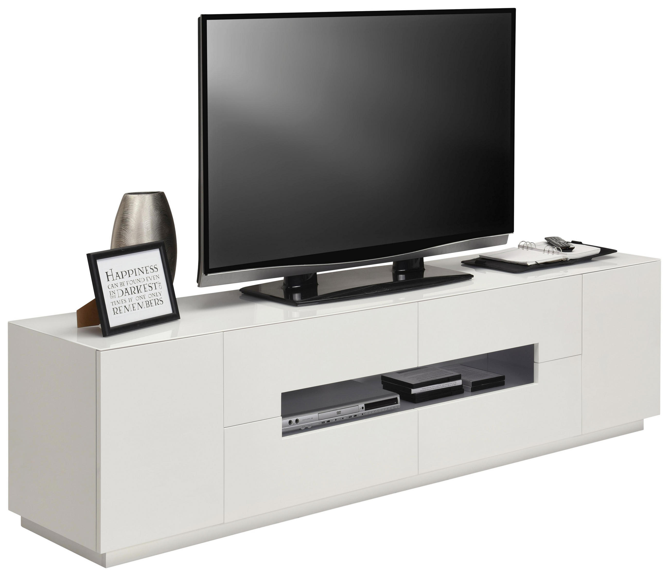 Tv Lowboard Hochglanz Weiss 200cm Breit Sharpcut Glas In